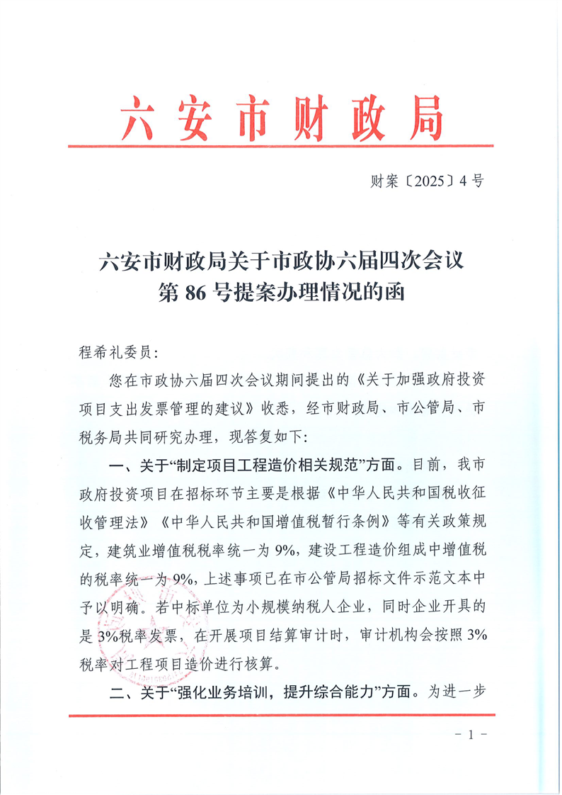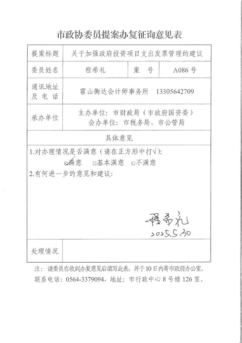 关于市政协六届四次会议第86号提案办理情况的函及征询意见表