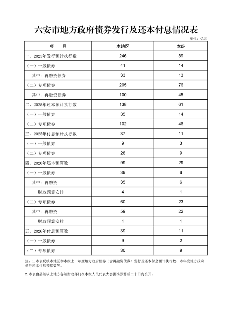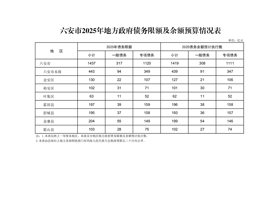 2025年政府债务预算公开表(含政府债务偿还计划)