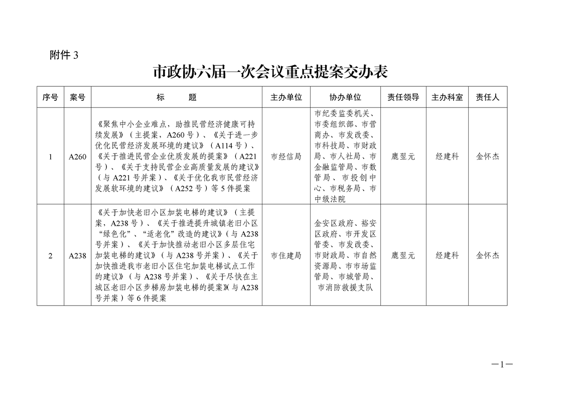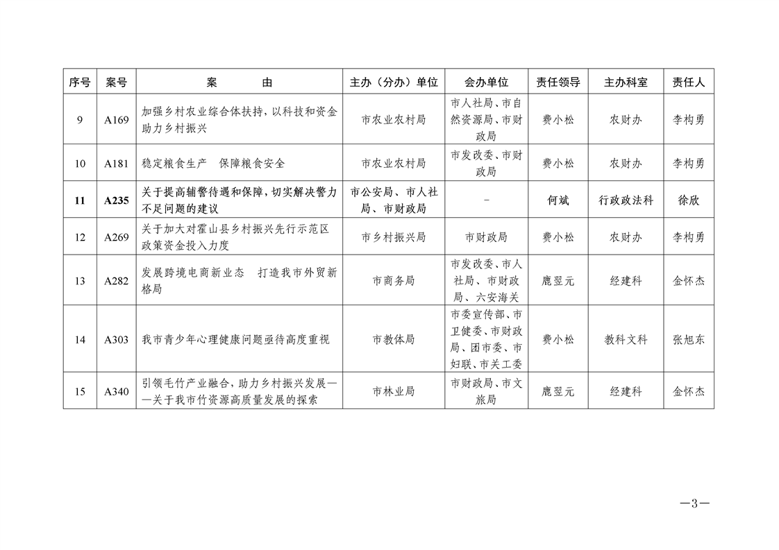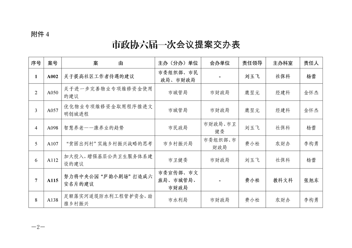 六安市财政局承担市政协六届一次会议提案办理任务分解表
