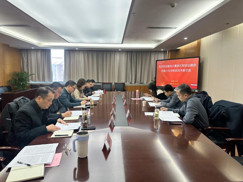 2026年1月23日,山东德州天衢新区财政金融部一行3人到我市调研交流财政国资相关工作,局分管负责同志,预算绩效管理科、非税(评审)中心、资产科、国企考核科、机关党委等科室负责同志参加会议。
